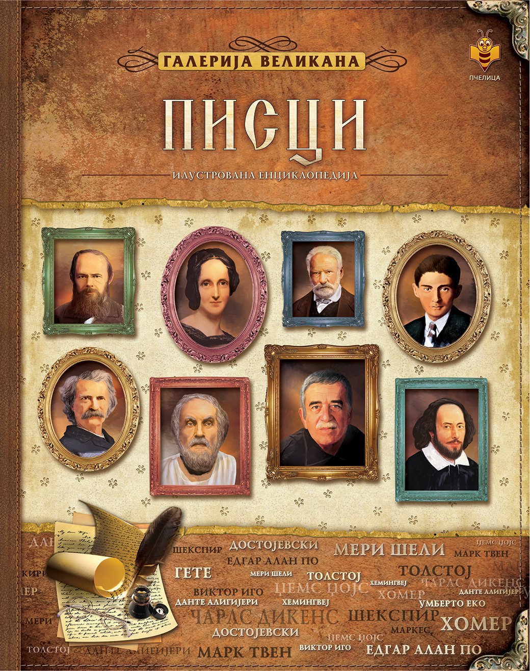 Enciklopedija Pisci u formi zbirke ilustrovanih biografija daje pregled najvažnijih imena iz sveta književnosti od Homera do Umberta Eka. Za svakog pisca je dat biografski pregled, ali i jednostavno i slikovito objašnjenje njegovog književnog stvaralaštva. Enciklopedija je namenjena deci, ali i svojim obimom i količinom informacija i odraslima može služiti kao enciklopedijski priručnik i podsetnik.
