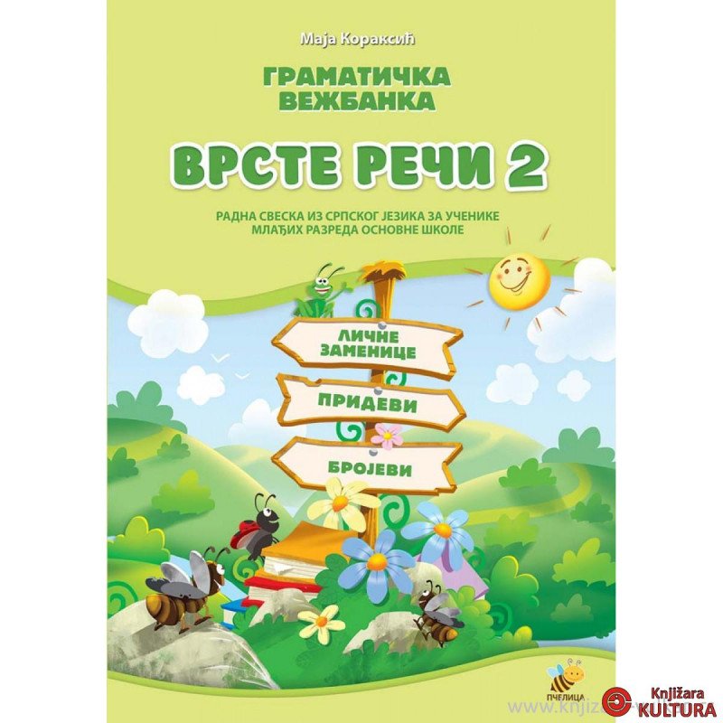 Gramatička vežbanka Vrste reči 2 sadrži osnovna pravila i brojne zadatke za uvežbavanje osnovnih pojmova o pridevima, ličnim zamenicama i brojevima.