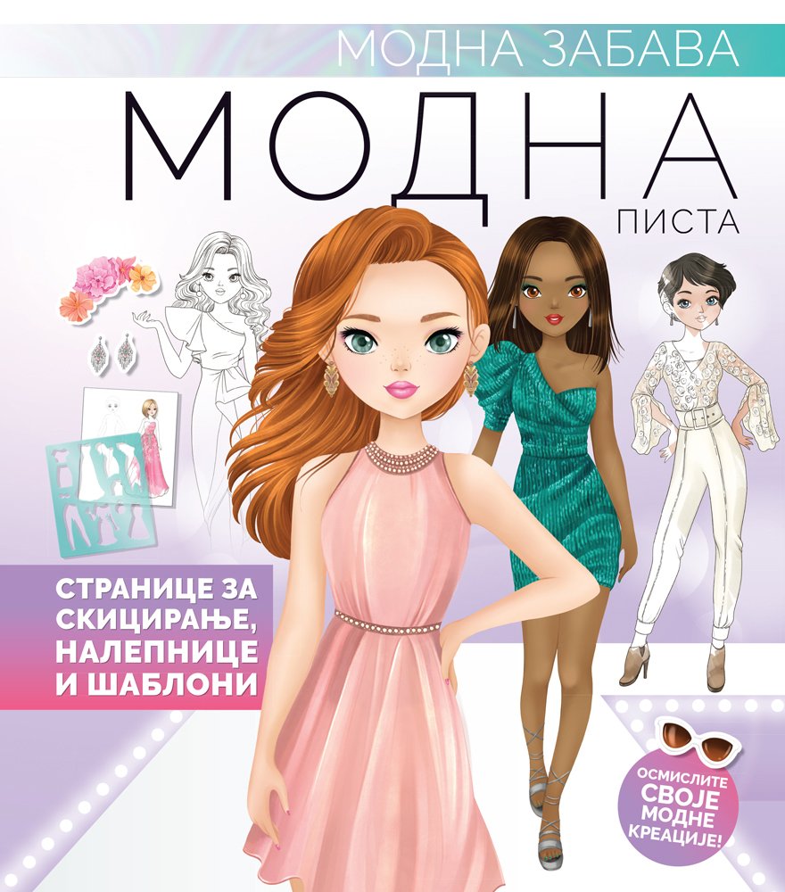 Osmislite svoje modne kreacije pomoću datih nalepnica, šablona, stranica za skiciranje sa spoljnim linijama, uz mnogo informacija i ideja.