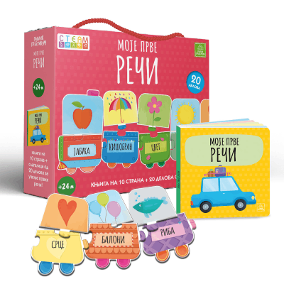 Knjiga na 10 strana sa slagalicom od 20 delova pomaže u razvoju fine motorike, podstiče učenje i poboljšava koncentraciju. Gledaj slike i nauči prve reči!
